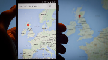 MapRemote displays a map on your computer’s screen or projector, and on your mobile phone. You can drag and zoom the map on your phone and the big screen will follow any movements. You can also highlight a place by single-tapping the map on your mobile to place a marker.